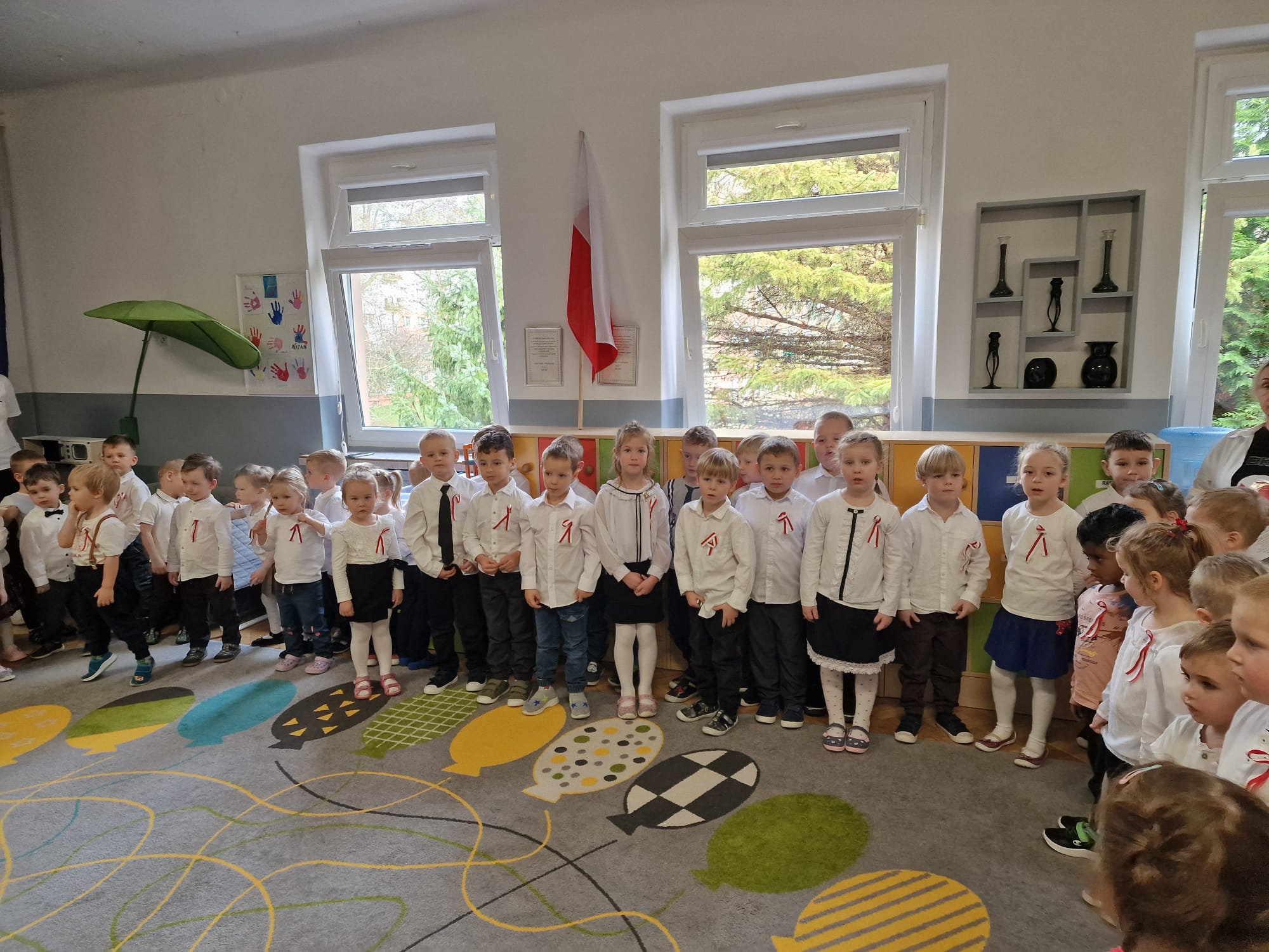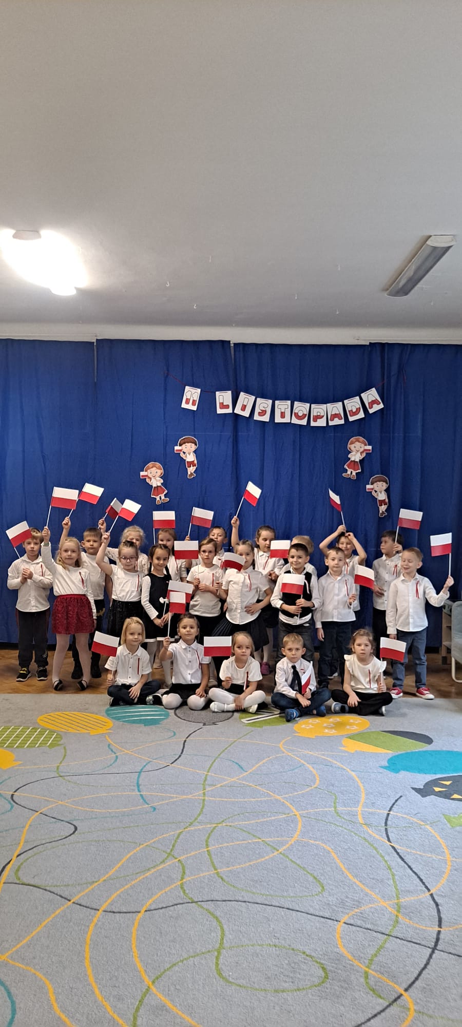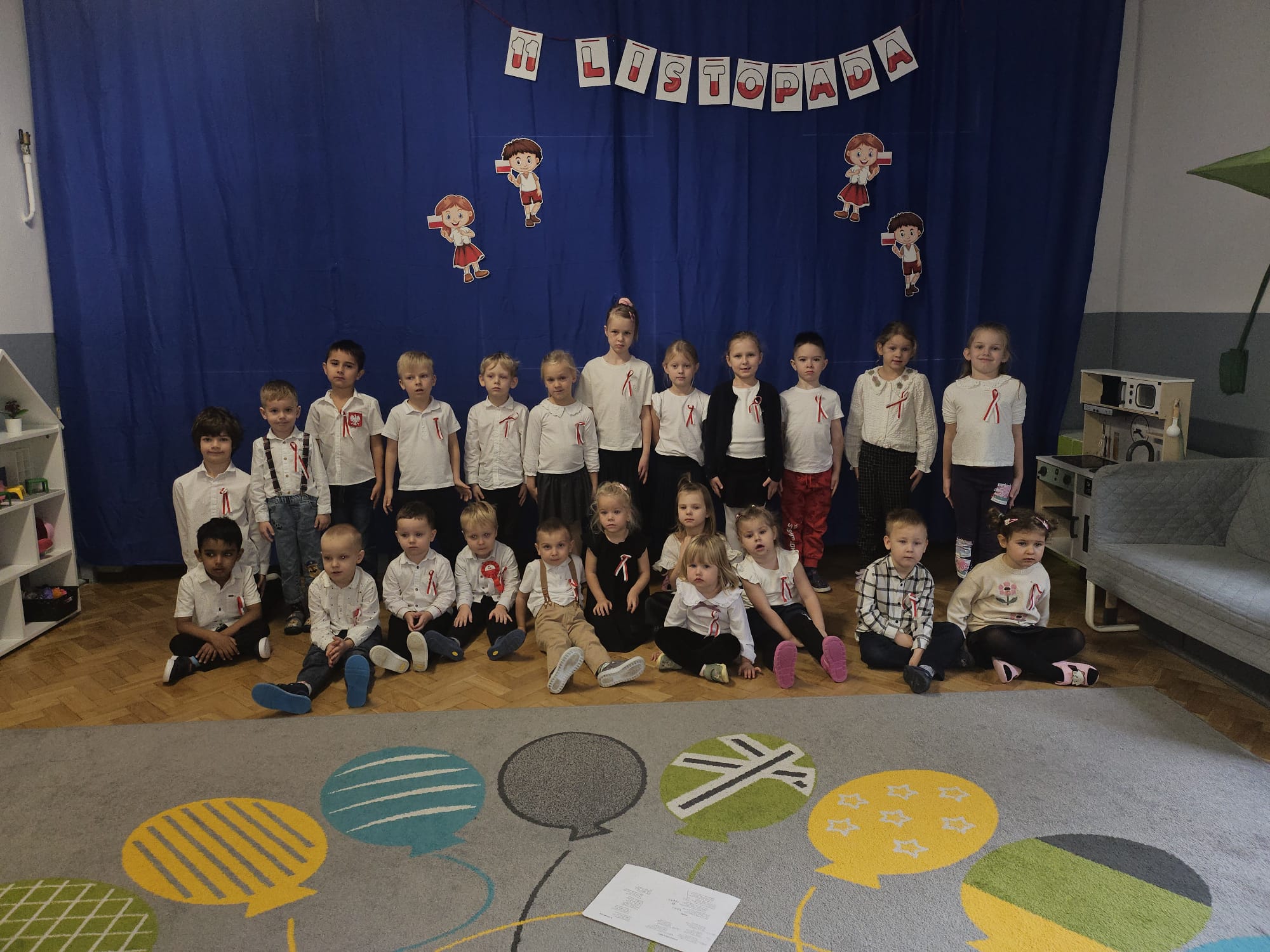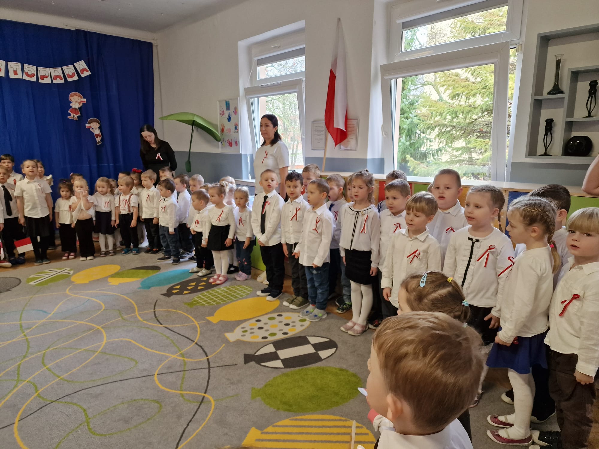 W naszym przedszkolu kultywujemy tradycje związane ze świętowaniem Dnia Niepodległości. Dzieci w tym dniu przygotowują krótkie przedstawienie związane z tematem, a także wspólnie odśpiewują hymn Polski.